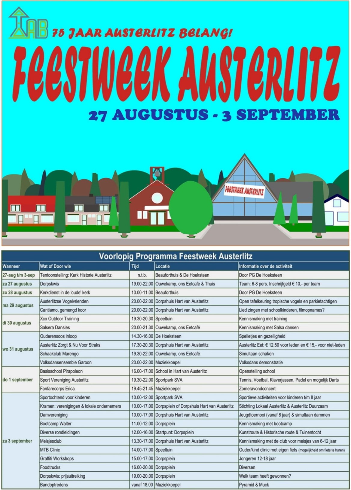 Van 27 augustus tot en met 3 september is de feestweek van Austerlitz. Jullie komen toch ook allemaal!?